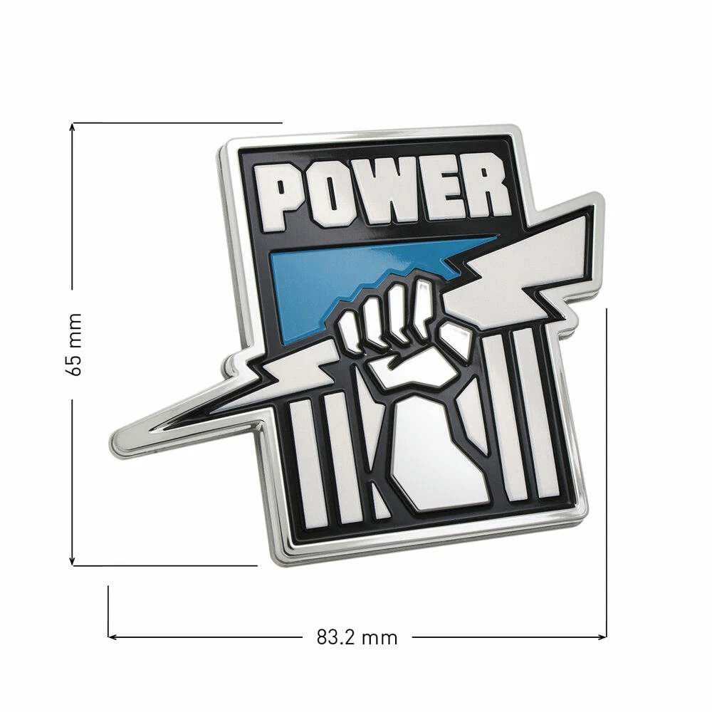 Show off your team pride with the Port Adelaide Power AFL Supporter 3D Chrome Logo. The super strong Peel-N-Stick backing adheres quickly and easily to most smooth surfaces like cars and laptops, and is backed by a 5 year guarantee on indoor and outdoor applications. The coated 3D finish is designed to stand up to the harsh Australian sun, ensuring that the finish on this Port Adelaide Power logo remains clear and sharp for the long run.