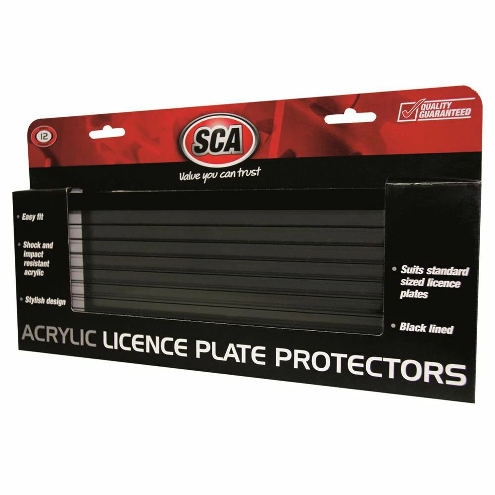 This black lined SCA Number Plate Frame with black trim can immediately add style to your vehicle and more specifically your licence plate. The 372 x 134mm size fits the 6 figure standard and is suited for all 6 states. Very easy to fit, this great product is also shock and impact resistant. This is a 2 piece package.